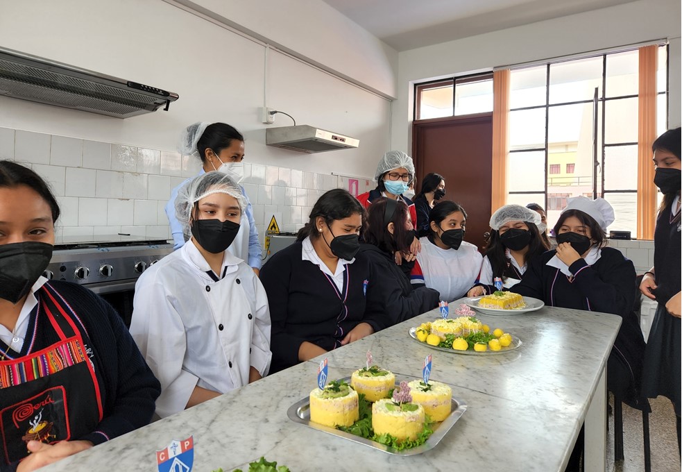 El área de francés y el taller de cocina nos sorprendieron con el proyecto “Causa Péruvienne” a cargo de las señoritas de 4to y 5to año de secundaria, quienes expusieron en el idioma extranjero francés la historia y preparación del plato.