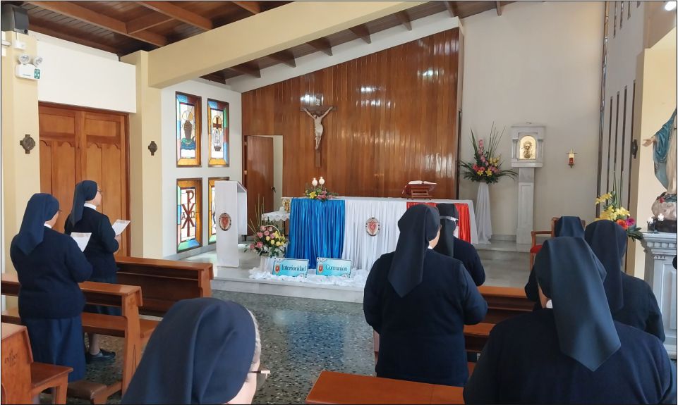La celebración Eucarística que clausuró la jornada de Hermanas Sirvientes tuvo como intención principal agradecer a Sor Concepción Meléndez por haber acompañado como Consejera y Asistenta en nuestra Provincia, así mismo con espíritu de fe, acoger a Sor Marililey Ríos como la nueva Consejera de la Provincia, pidiendo a Dios las luces del Espíritu Santo para que sus aportes y acciones estén motivadas por el querer de Dios.